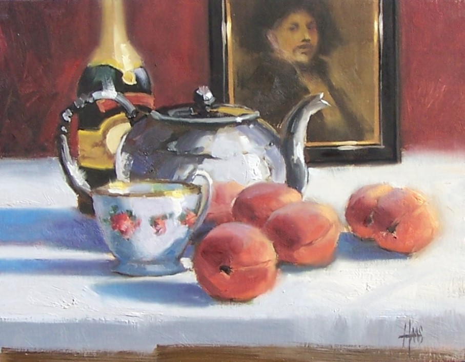 Elegant Tea Posted on 2014-11-062016-08-26 by Tom Haas Elegant Tea 11″ x 14″ oil painting by Tom Haas “‘Elegant Tea’ arrived perfectly! It’s beautifully done, especially the dark and light, how interesting it is, and the fuzzy peaches. It could be in a museum!” P.L.